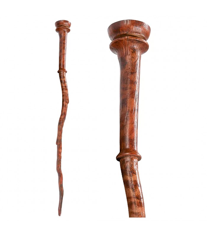 Baguette présentée dans une boite de collection, avec un écrin en velours, moulé à la forme de la baguette. Deux voiles de chaque côté du coffret viennent la recouvrir pour lui offrir un aspect noble. Cette baguette en résine mesure environ 34 cm.