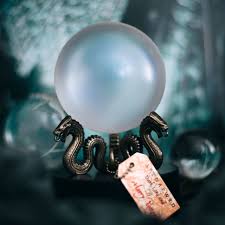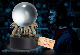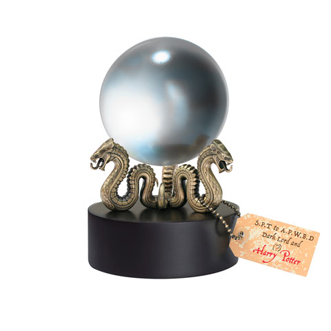 Réplique authentique de la boule de la Prophétie vue dans les films Harry POtter. Le support forme trois serpents faits de métal plaqué bronze.